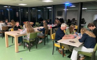 Een week na het vertrek van meneer Erklaas, ik tutoyeer deze wijze oude man liever niet, werd in de kantine een pakjes-spelletjesavond gehouden voor en met de J1, J2 en J3.