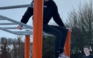 Daarna moesten de teams over een klimtoestel zien te komen, zonder de grond te raken. Als extra handicap moest een bal worden meegenomen die in een kist lag. De bal mocht niet uit de kist en ook niet worden vastgehouden. Het was soms best spannend, zeker door de hoogte — en voor Fenna ook omdat ze niet precies wist hoe ze nou allebei haar benen over de stang moest krijgen.