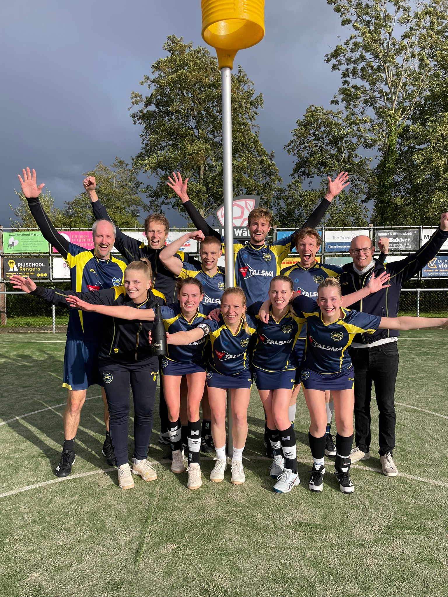 Met nog één speelronde te gaan was de titel al binnen. In een sterke poule met DTL 1, De Wâlden 1 en Vlug & Vaardig/Quick ’21 1 bleef De Granaet de concurrentie knap voor. De cijfers spreken voor zich: in vijf wedstrijden werden vier overwinningen geboekt, met een doelsaldo van +23 (91 doelpunten voor, 68 tegen). De beslissende overwinning volgde afgelopen zaterdag met een klinkende 8-17 winst op De Wâlden.