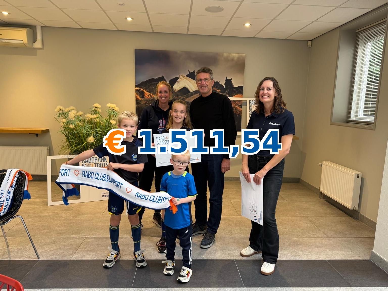 Ook dit jaar deed KV De Granaet mee aan de Rabo ClubSupport-actie — en met succes! Dankzij de stemmen van leden van de Rabobank mocht onze vereniging een prachtig bedrag van € 1.511,54 in ontvangst nemen.