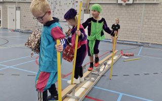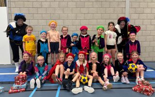 Samen met de trainers verzorgden zij de pietentraining (en die pieten wilden zelf ook wel eens leren korfballen 😄). In de zaal stonden allerlei leuke spelletjes klaar: lopen over het dak, pakjes gooien in de schoen, kruipen, (blind) pakjes overgooien en slalommen met cadeautjes.